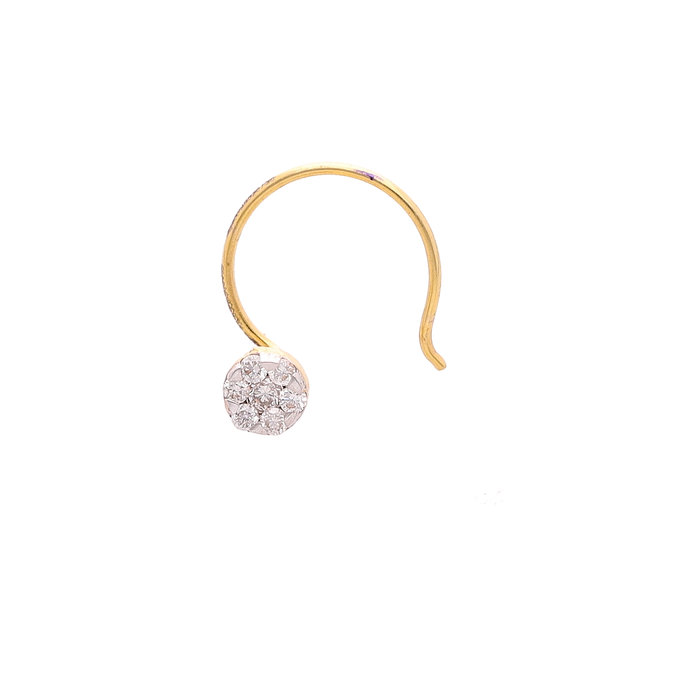 one yellow gold nosepin, partly rhodium plated, weighing in total 0.17g., containing seven (7) natural diamond