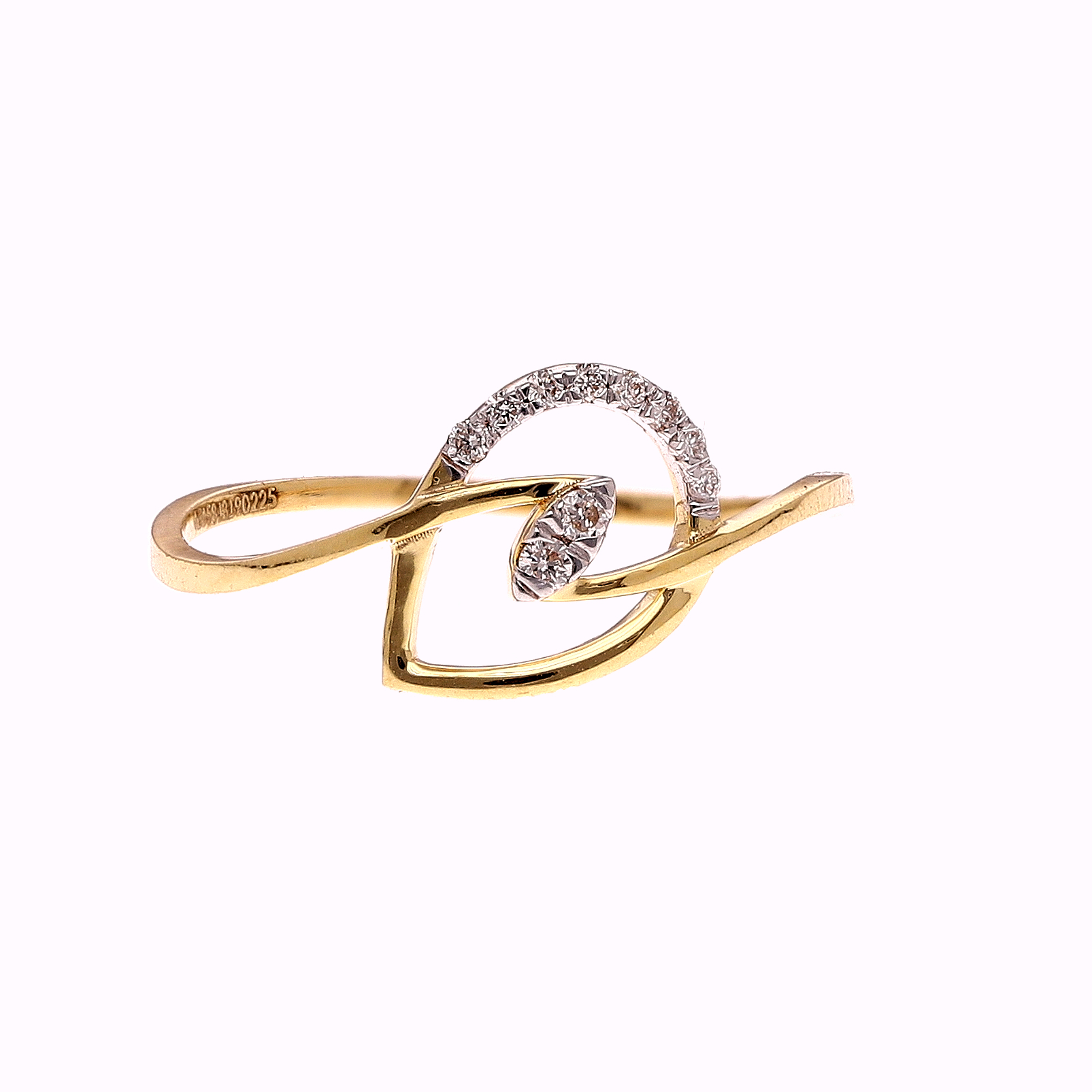 ONE YELLOW GOLD RING, PARTLY RHODIUM PLATED, WEIGHING IN TOTAL 0.76G.,CONTAING TEN (10) NATURAL DIAMOND