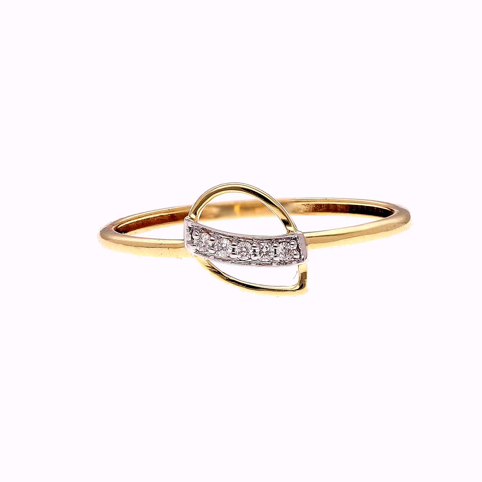 ONE YELLOW GOLD RING, PARTLY RHODIUM PLATED, WEIGHING IN TOTAL 0.69G.,CONTAING FIVE (5) NATURAL DIAMOND